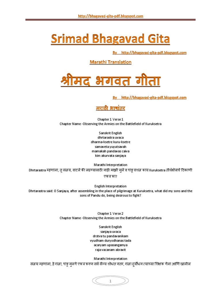 Download Bhagavad Gita In Marathi Pdf Bhagavad Gita